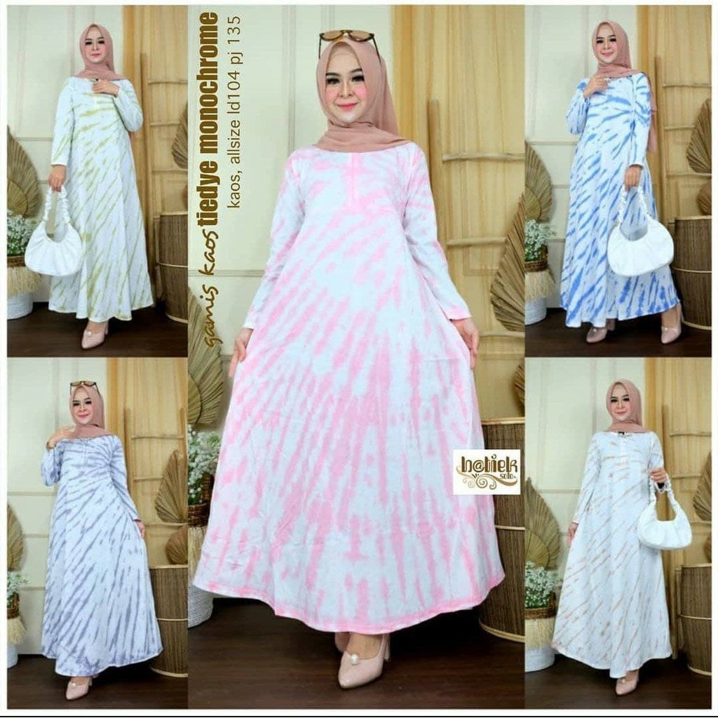Toko Grosir Fashion M di Kota Palangka Raya Gamis Kaos Tiedye Monochrome Longdres Batik || Longdres Jumbo Busui dari Arsyana Store Kota Pekalongan