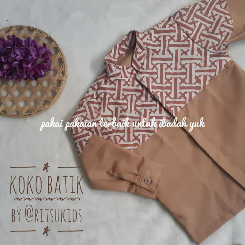 kemeja koko anak , perpaduan batik cap dan katun toyobo, adem untuk anak anak