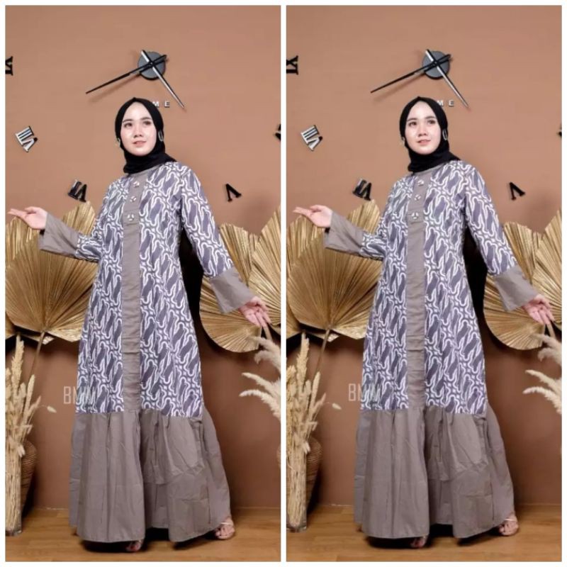 Name: Gamis Batik Etnik Modern Kombinasi Polos | Longdress Muslim Seragam Keluarga Termurah Best Seller